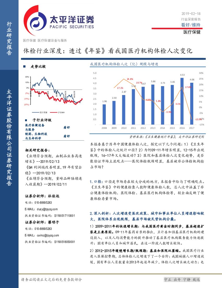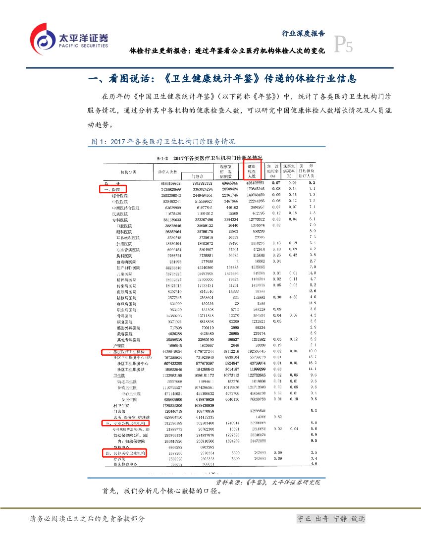太平洋证券:体检行业深度:透过《年鉴》看我国医疗机构体检人次变化.pdf