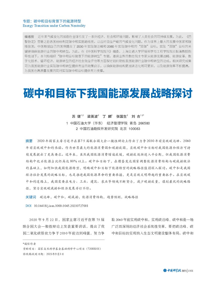 中国石油大学(华东):碳中和目标下我国能源发展战略探讨.pdf