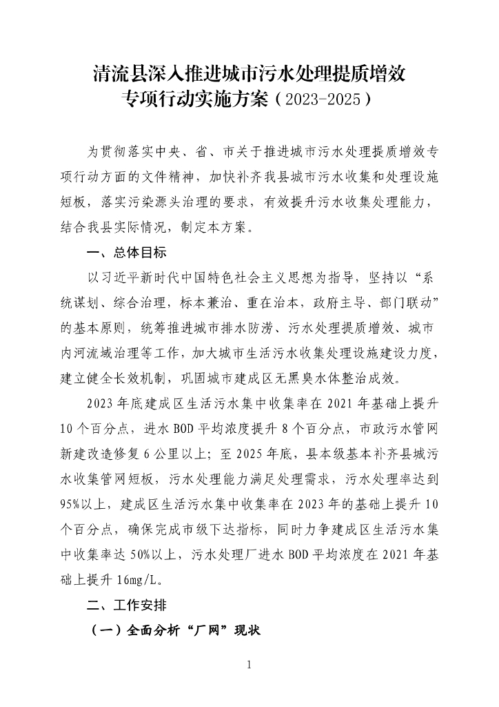 清流县深入推进城市污水处理提质增效专项行动实施方案(2023-2025).pdf
