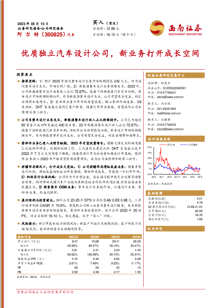 西南证券:阿尔特(300825)-优质独立汽车设计公司,新业务打开成长空间.pdf