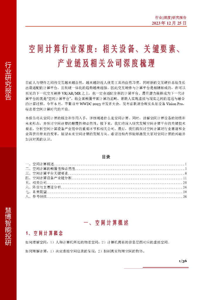 慧博智能投研:空间计算行业深度:相关设备、关键要素、产业链及相关公司深度梳理.pdf