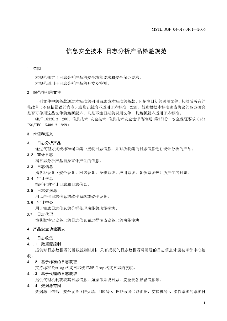 MSTL_JGF_04-018公安部信息安全技术日志分析产品检验规范.pdf