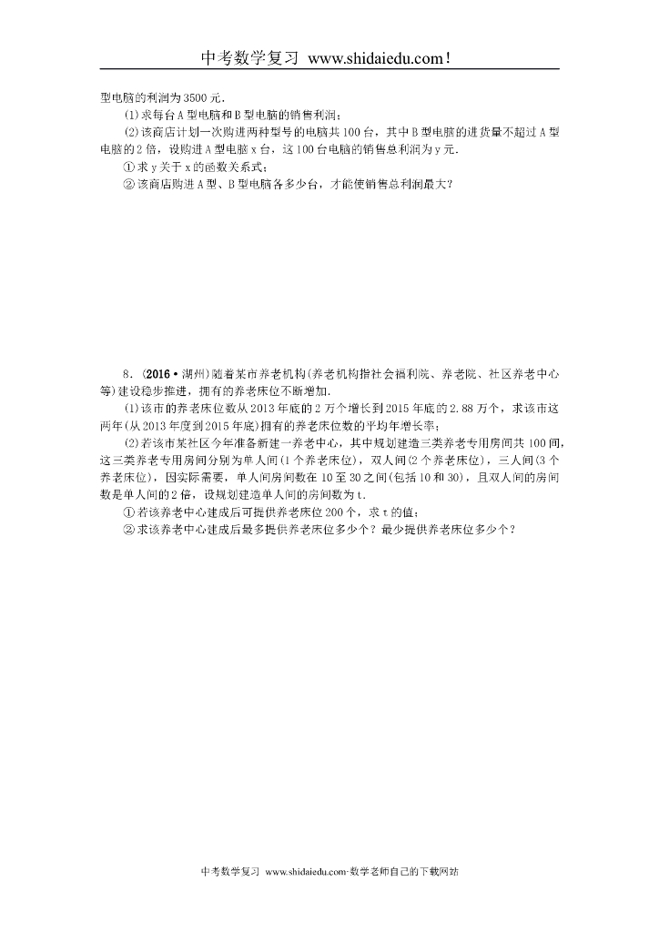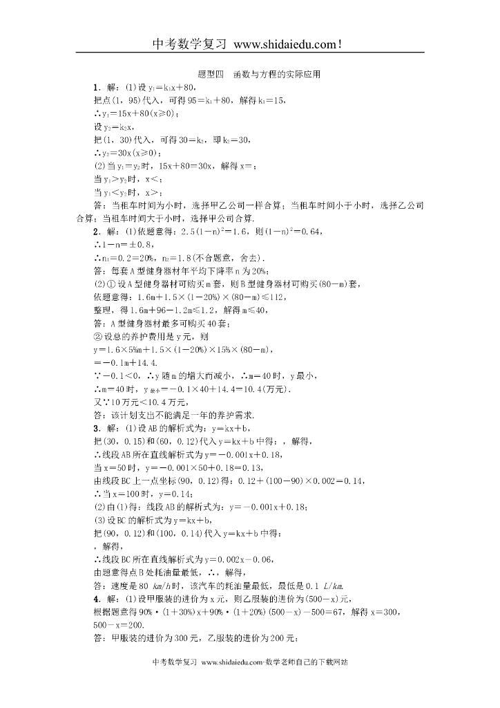 中考数学二轮复习专题二解答重难点题型突破题型四函数与方程的实际应用试题2.doc