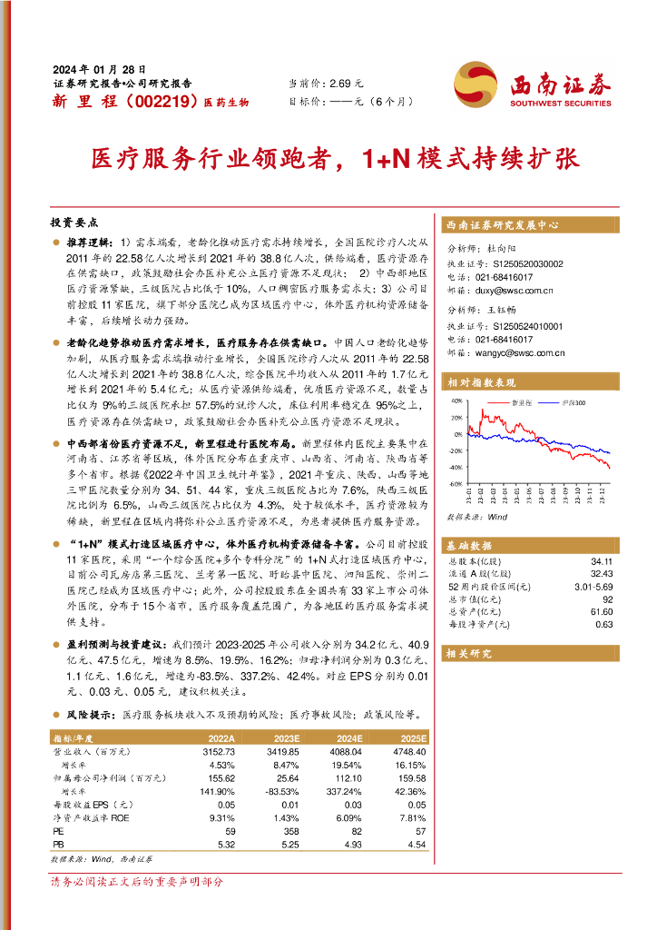 西南证券:新里程(002219)-医疗服务行业领跑者,1+N模式持续扩张.pdf
