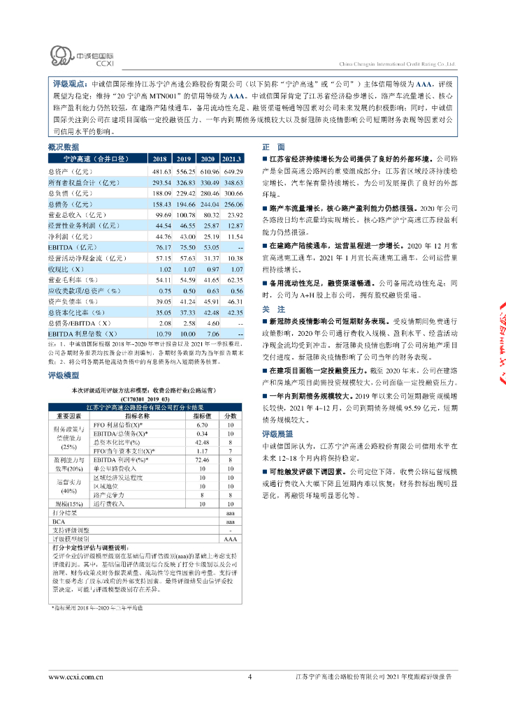 中诚信:江苏宁沪高速公路股份有限公司2021年度跟踪评级报告.pdf