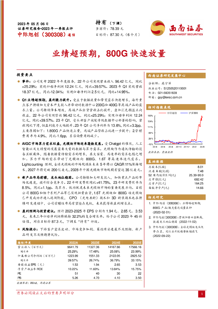 西南证券:中际旭创(300308)-业绩超预期,800G快速放量.pdf