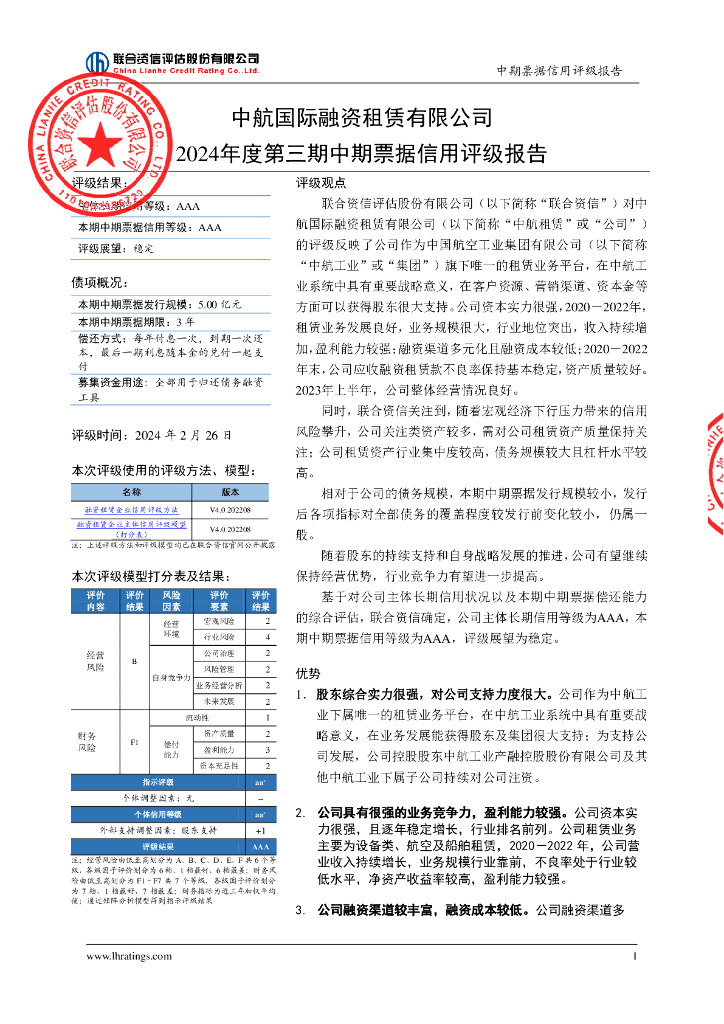 联合资信:中航国际融资租赁有限公司2024年度第三期中期票据信用评级报告.pdf