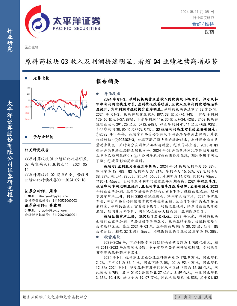 太平洋证券:医药行业深度研究:原料药板块Q3收入及利润提速明显,看好Q4业绩延续高增趋势.pdf