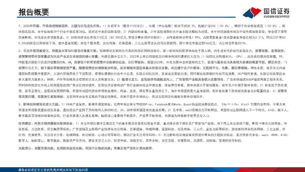 国信证券:传媒互联网2023年度投资策略:基本面及估值有望低位修复,关注成长主题.pdf