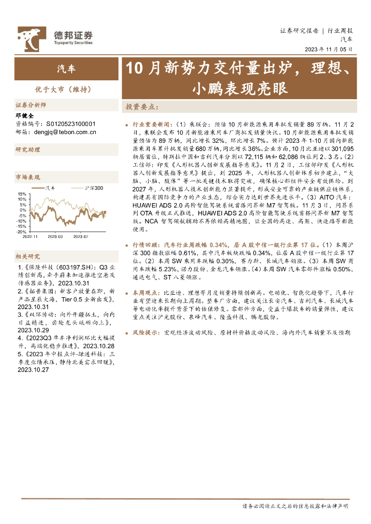 德邦证券:汽车行业周报:10月新势力交付量出炉,理想、小鹏表现亮眼.pdf