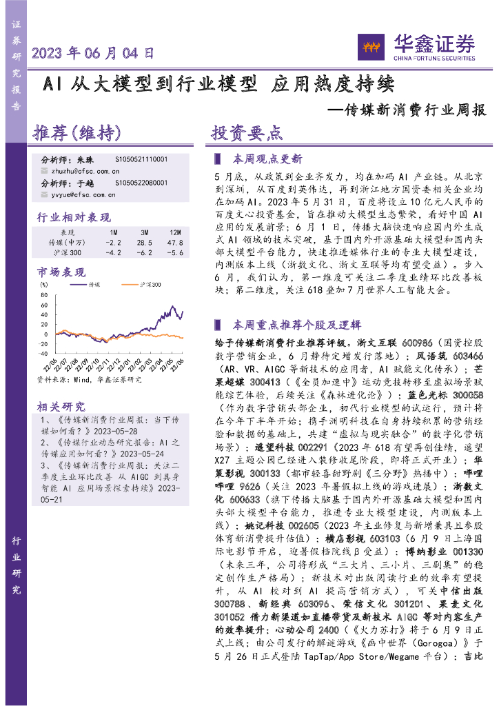 华鑫证券:传媒新消费行业周报:AI从大模型到行业模型 应用热度持续.pdf