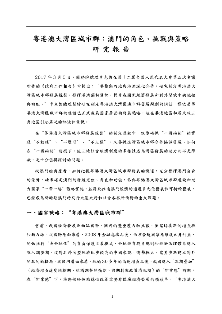 澳门发展策略研究中心:粤港澳大湾区城市群——澳门的角色、挑战与策略研究报告.pdf