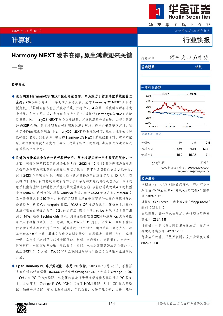 华金证券:计算机:Harmony NEXT发布在即,原生鸿蒙迎来关键一年.pdf
