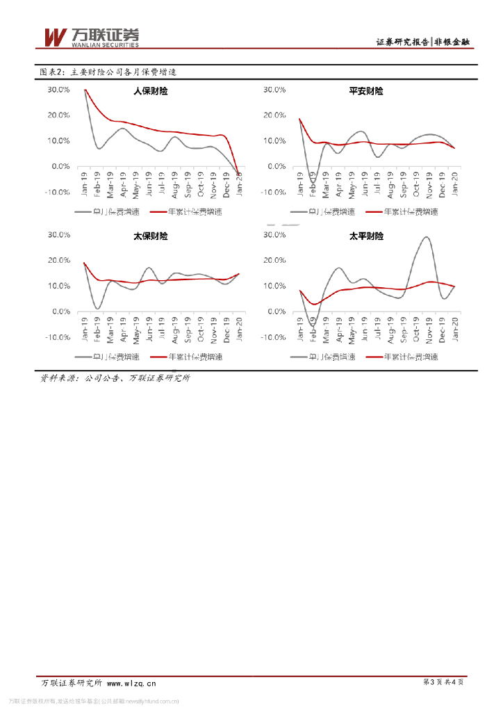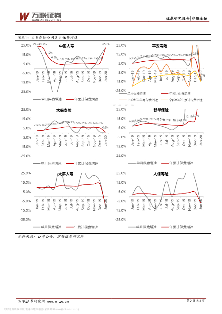 万联证券:上市险企2020年1月保费数据跟踪:1月保费增速分化,疫情影响2月显现.pdf