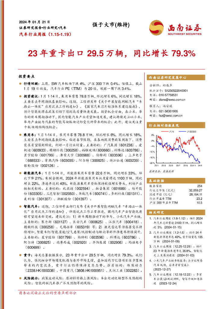 西南证券:汽车行业周报:23年重卡出口29.5万辆,同比增长79.3%.pdf