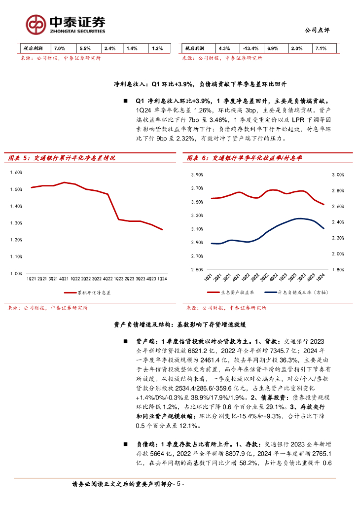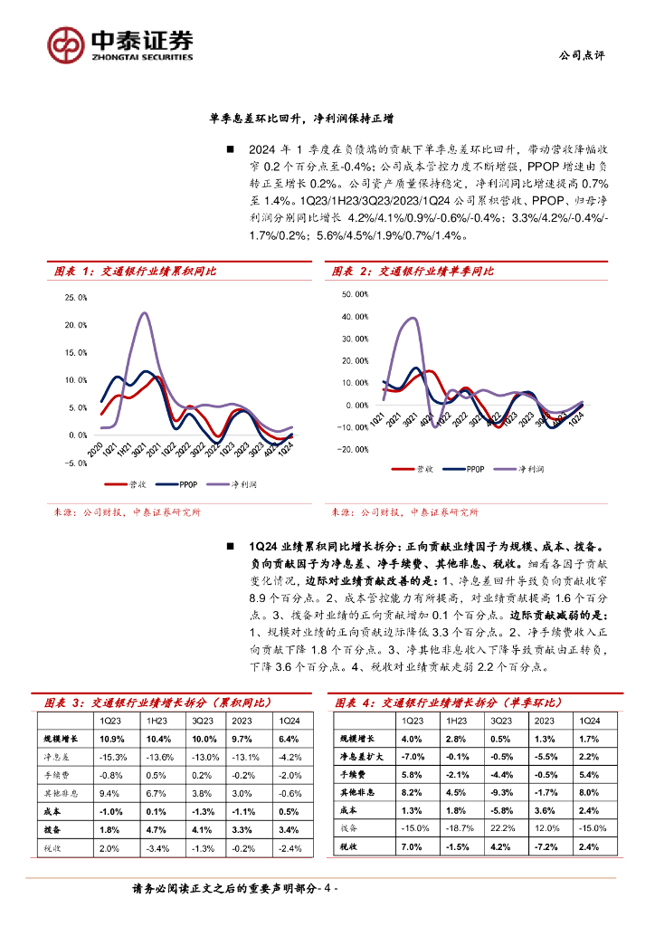 中泰证券:详解交通银行2023年报&2024一季报:单季息差环比回升,净利润保持正增.pdf