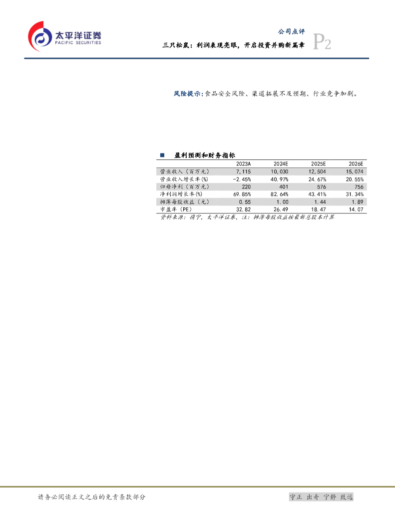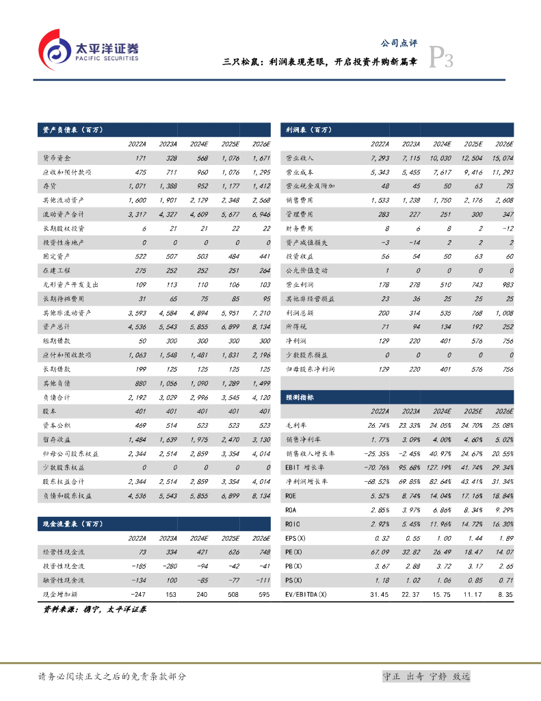 太平洋证券:三只松鼠:利润表现亮眼,开启投资并购新篇章.pdf