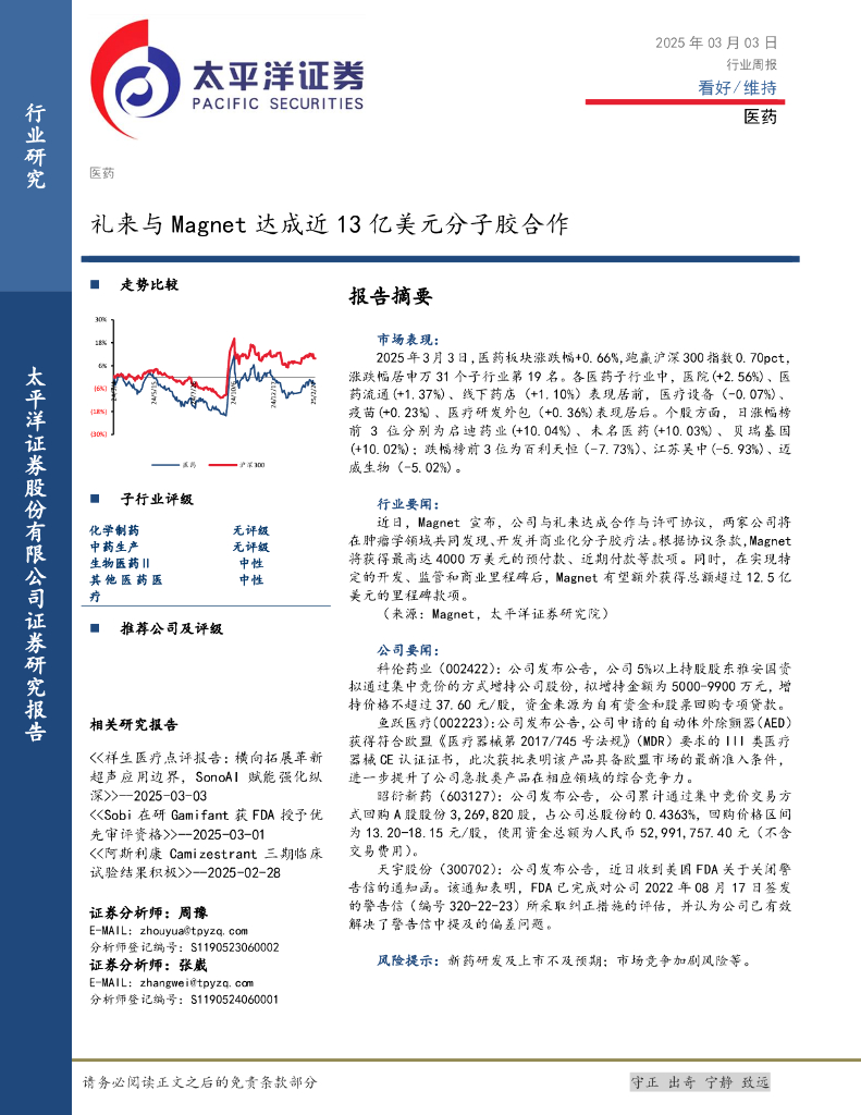 太平洋证券:医药行业周报:礼来与Magnet达成近13亿美元分子胶合作.pdf