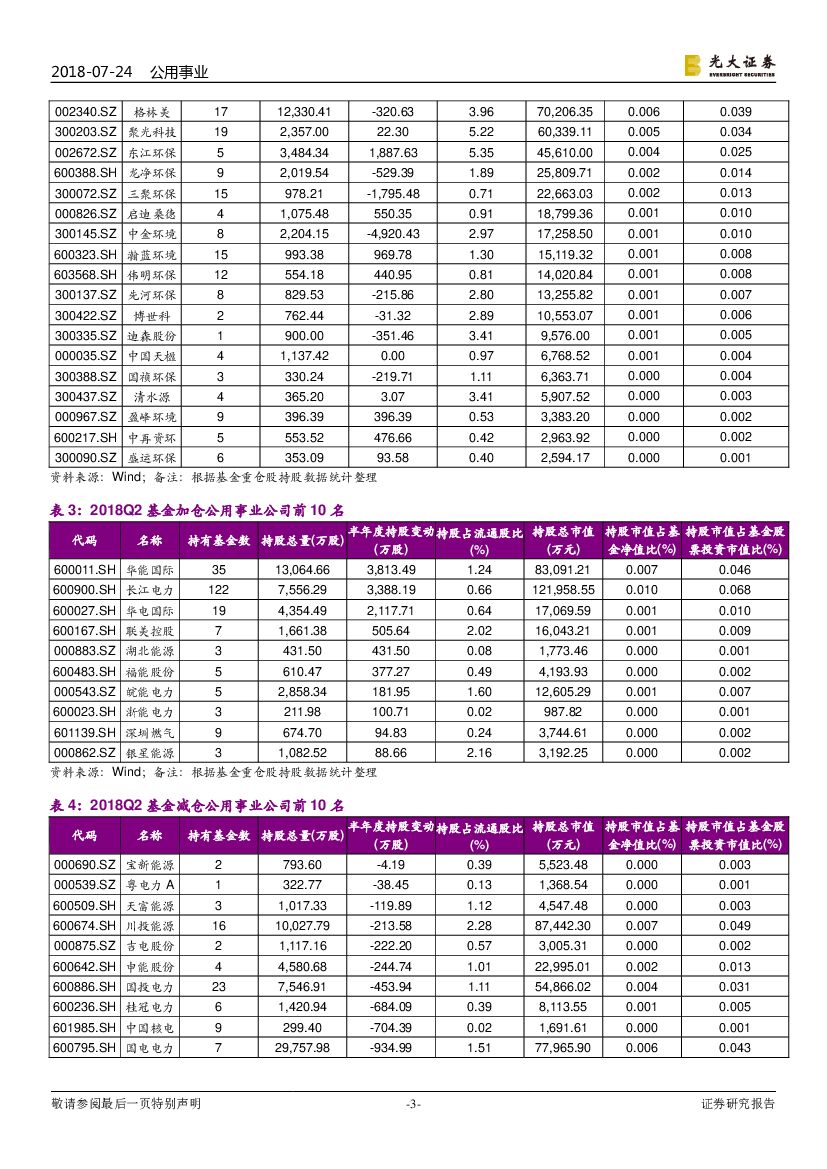 光大证券:2018年基金二季报公用事业持仓分析:公用事业持仓企稳回升,环保持仓降至冰点.pdf