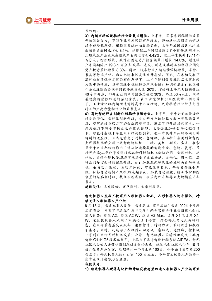 上海证券:机械行业周报:杰克股份24H1业绩亮眼,智元机器人发布五款商用人形机器人新品.pdf