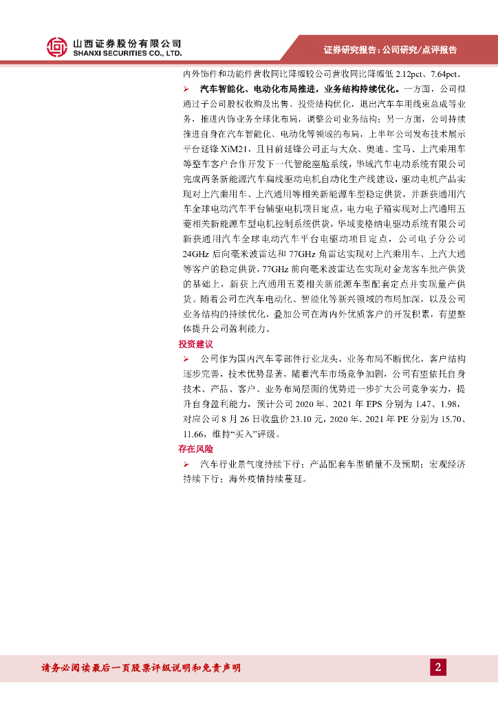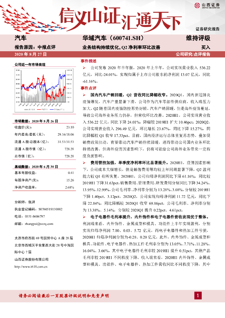 山西证券:华域汽车(600741)-业务结构持续优化,Q2净利率环比改善.pdf