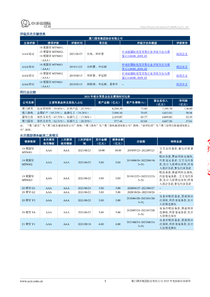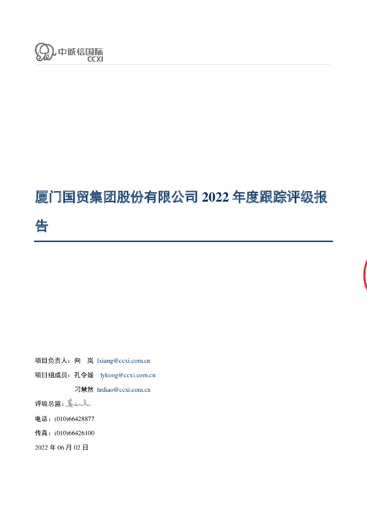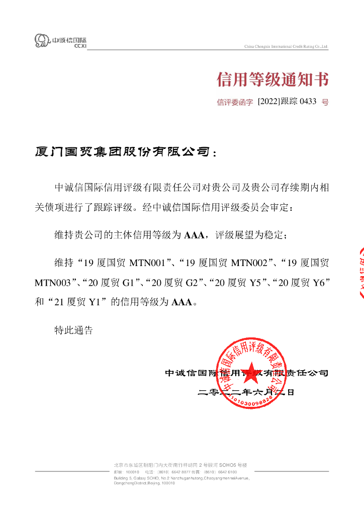中诚信:厦门国贸集团股份有限公司2022年度跟踪评级报告.pdf