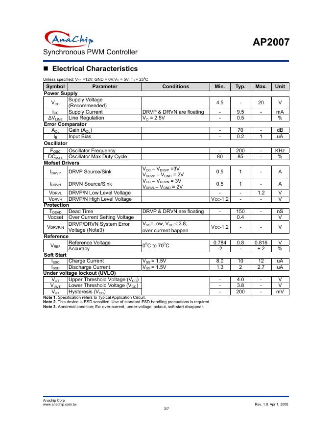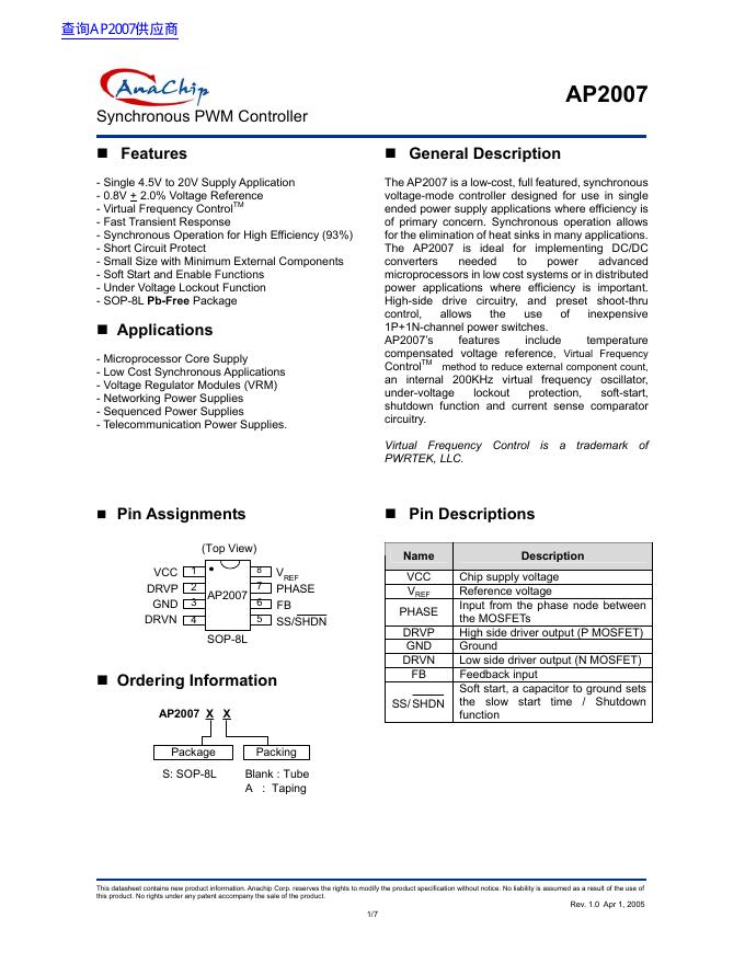 AnaChip AP2007 数据手册.pdf