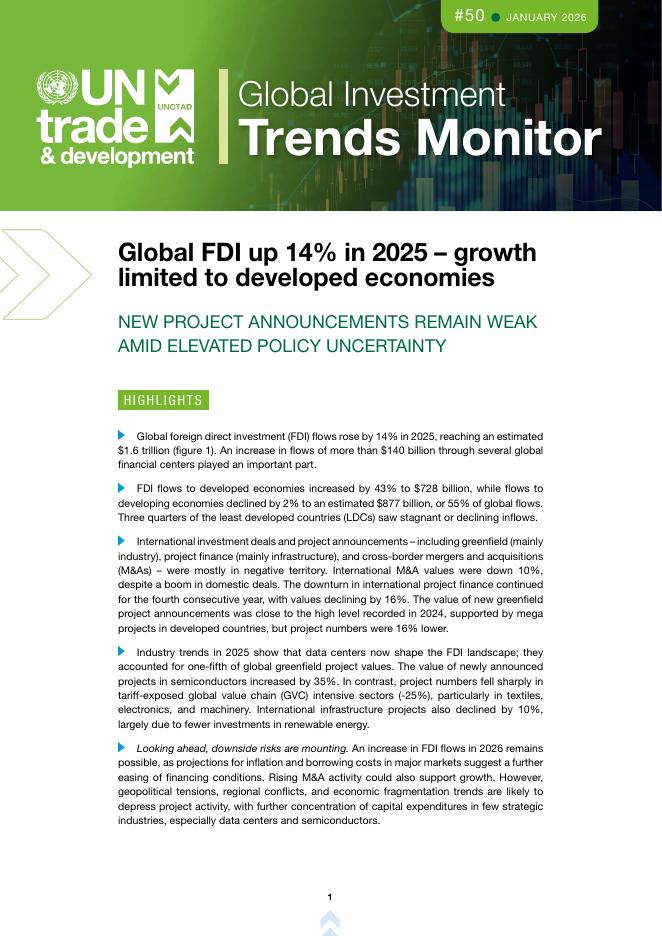 联合国贸发组织:2026年1月全球投资趋势监测报告(英文版).pdf