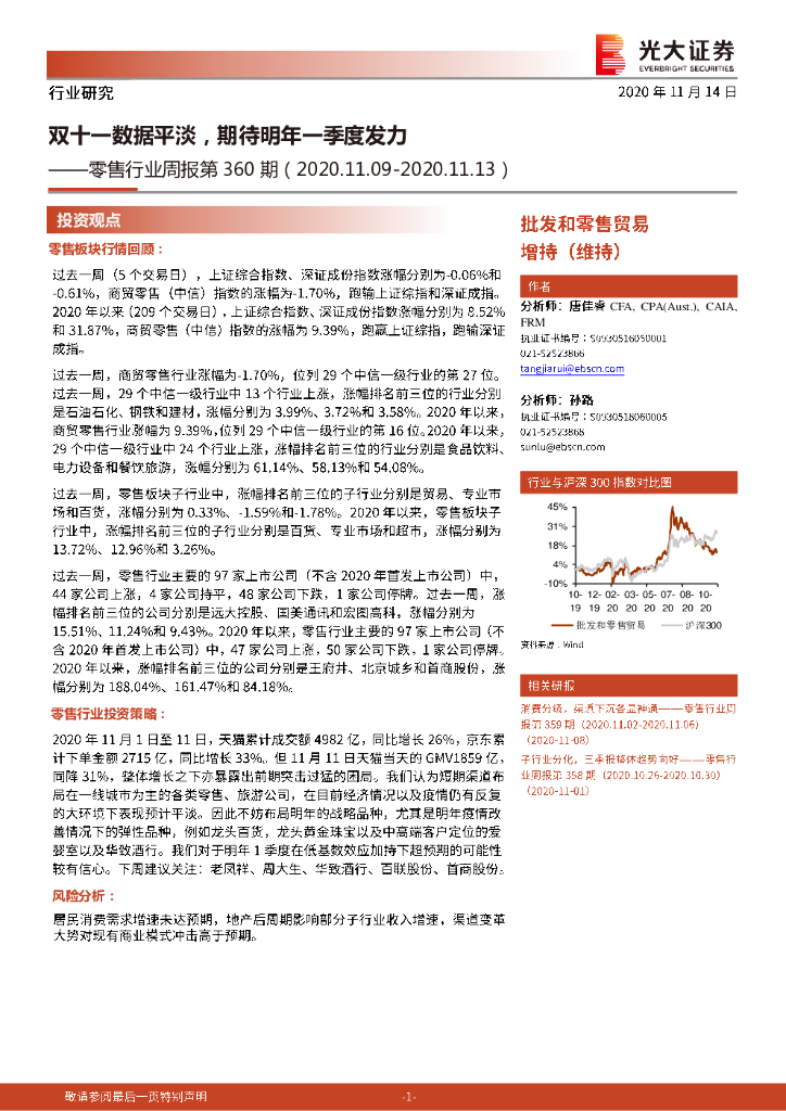 光大证券:零售行业周报第360期:双十一数据平淡,期待明年一季度发力.pdf