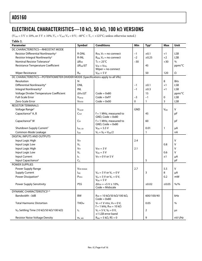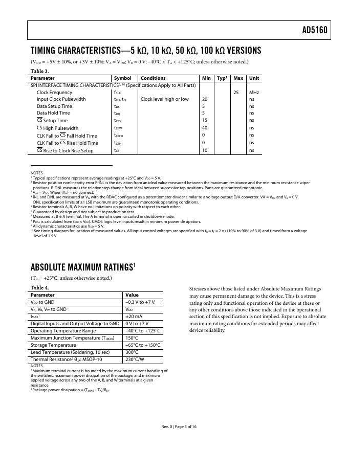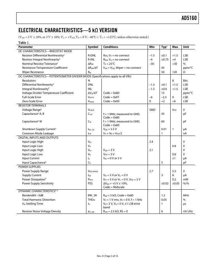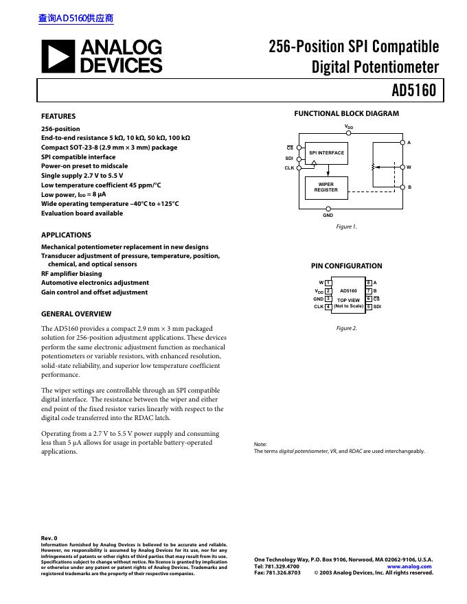 ANALOG DEVICES AD5160 256-Position SPI Compatible Digital Potentiometer 数据手册.pdf