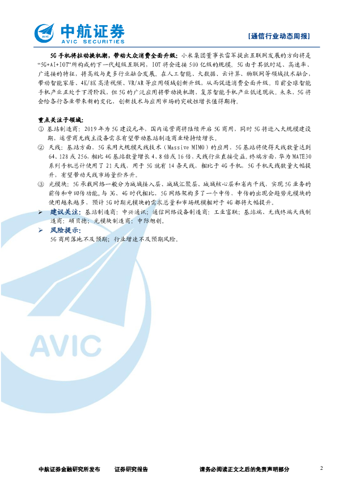 中航证券:通信行业周报:5G创新应用趋势在即,换机潮带动消费全面升级.pdf
