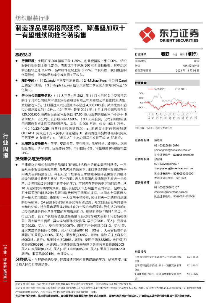 东方证券:纺织服装行业:制造强品牌弱格局延续,降温叠加双十一有望继续助推冬装销售.pdf