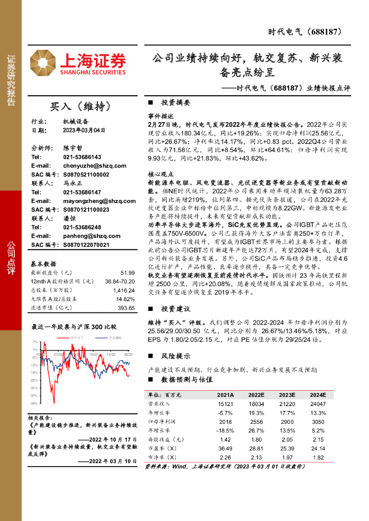 上海证券:时代电气(688187)-业绩快报点评:公司业绩持续向好,轨交复苏、新兴装备亮点纷呈.pdf