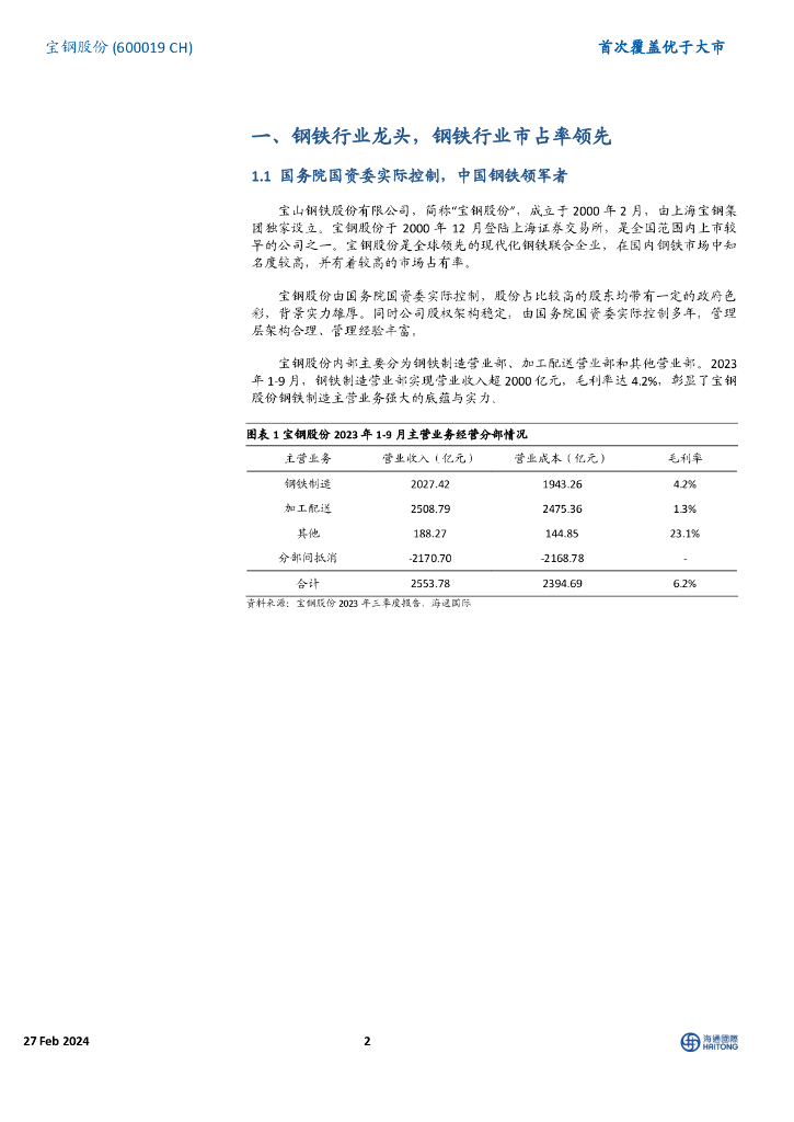 海通国际:宝钢股份(600019)-首次覆盖:重组整合持续,集中度、议价与盈利能力不断提升.pdf