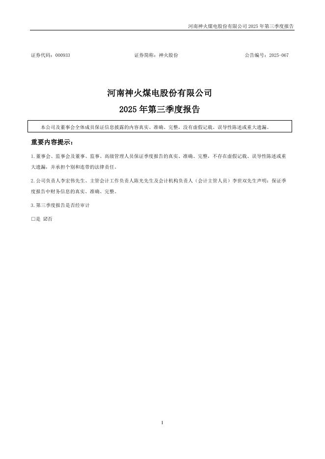 000933-神火股份:2025年三季度报告.pdf