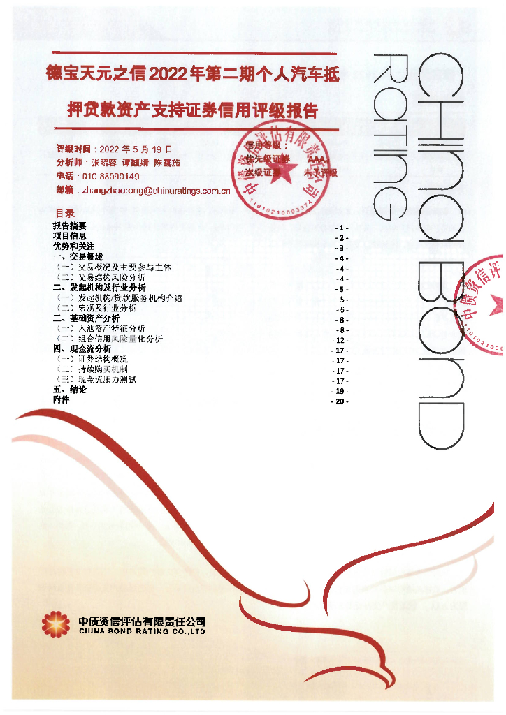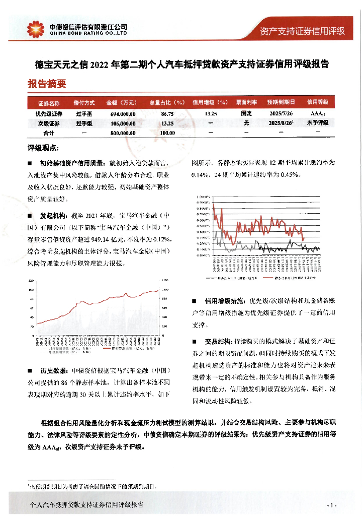 中债资信:德宝天元之信2022年第二期个人汽车抵押贷款资产支持证券评级报告及跟踪评级安排说明.pdf