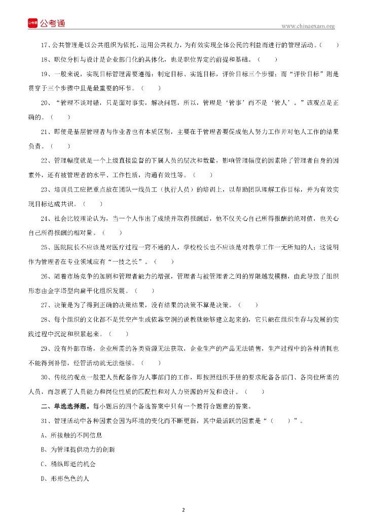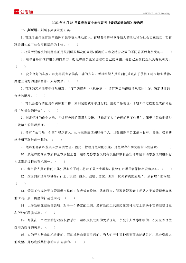 2022年6月25日重庆市事业单位联考《管理基础知识》精选题.pdf