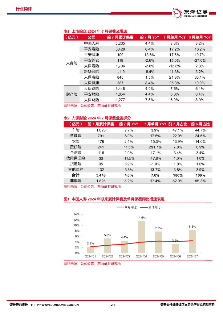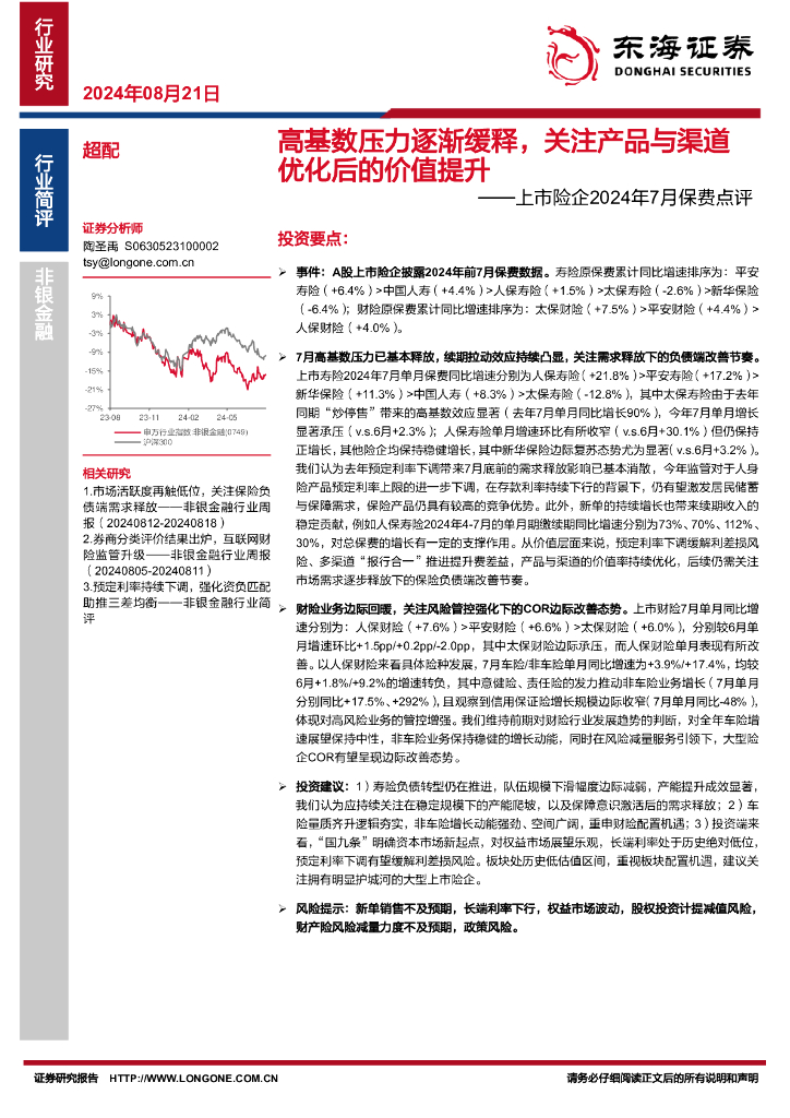 东海证券:上市险企2024年7月保费点评:高基数压力逐渐缓释,关注产品与渠道优化后的价值提升.pdf
