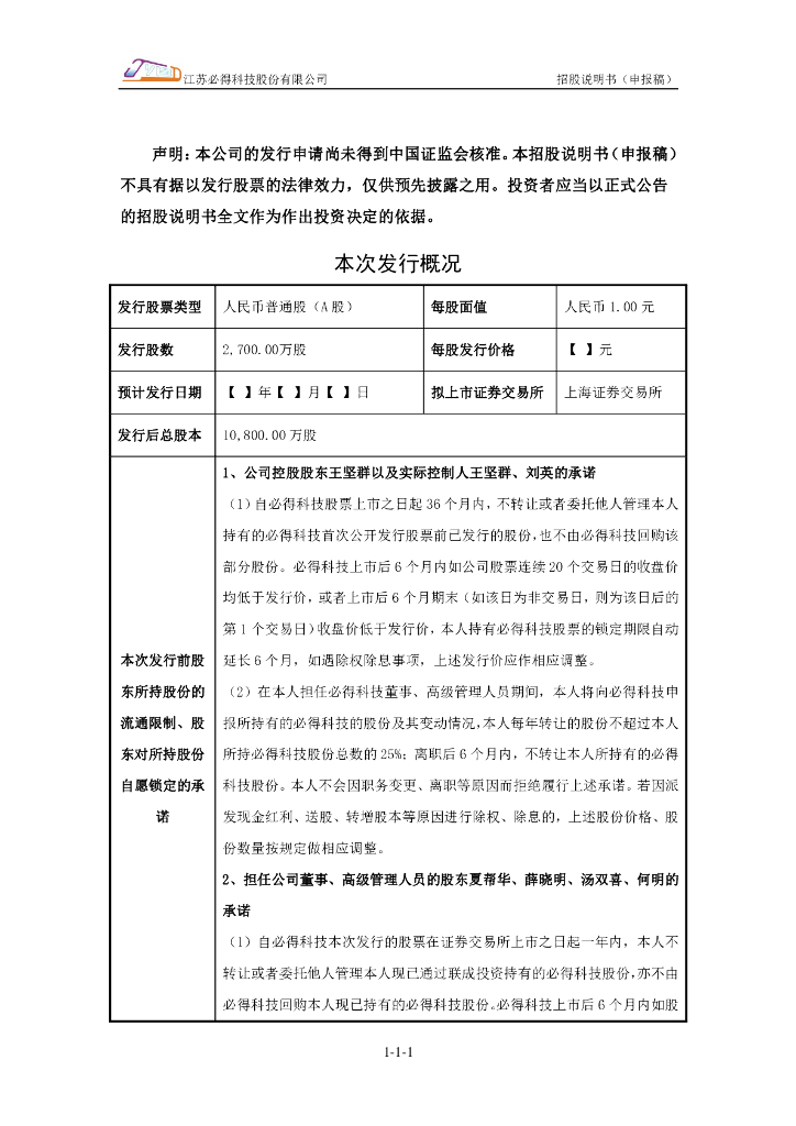 江苏必得科技股份有限公司上交所主板IPO上市招股说明书.pdf
