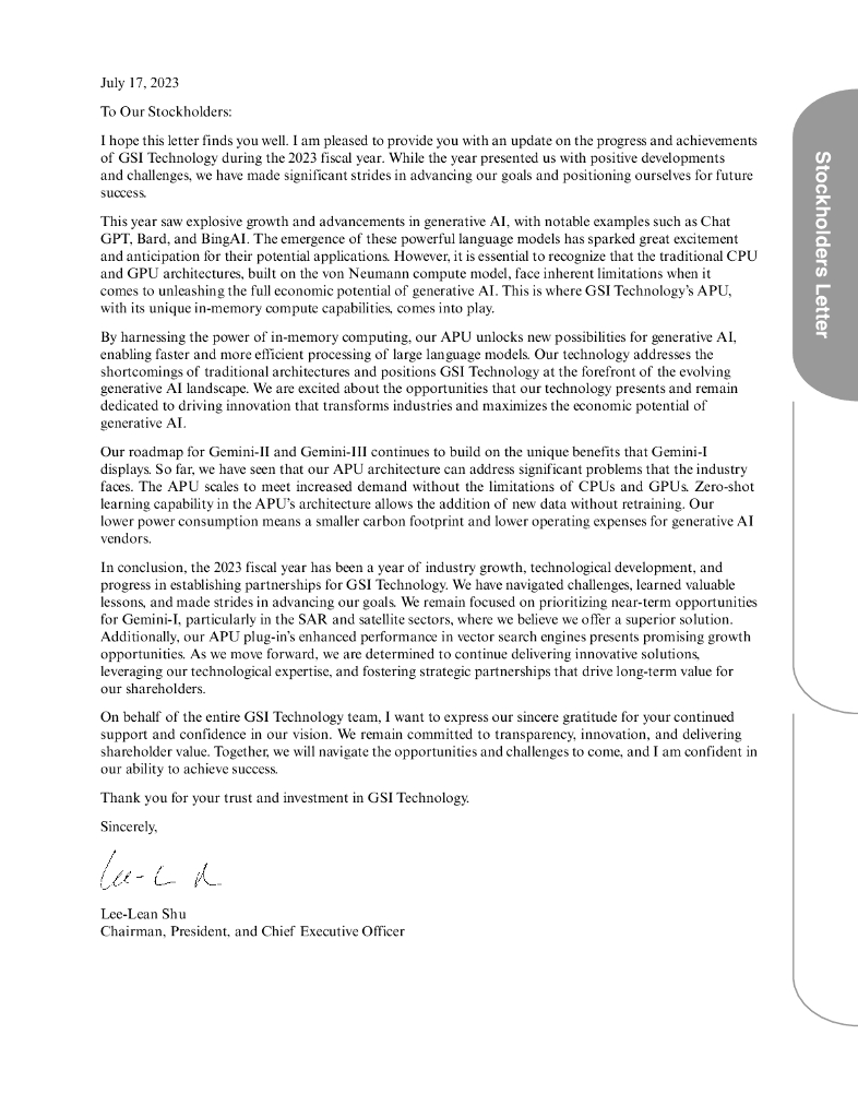 GSI Technology Inc.(GSIT)2023财年年度报告(英文版).pdf