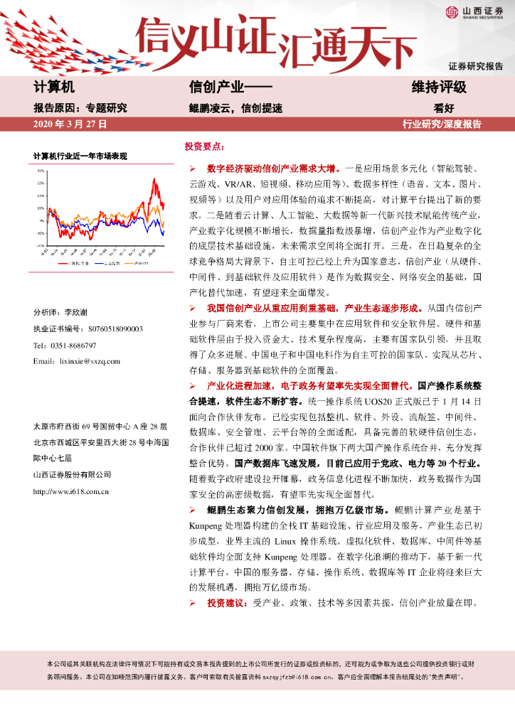 山西证券:计算机行业深度报告:信创产业——鲲鹏凌云,信创提速.pdf