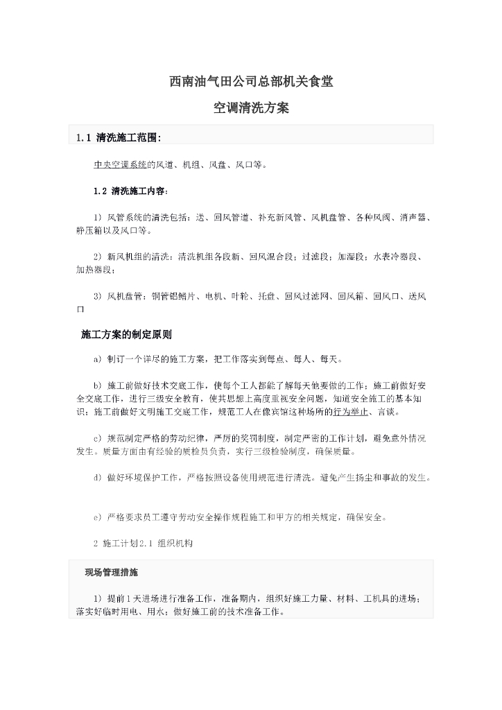 食堂中央空调清洗方案.doc