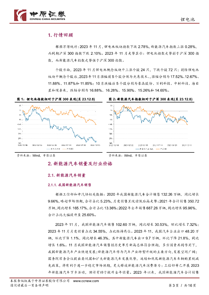 中原证券:锂电池行业月报:销量新高价格仍承压,短期适度关注.pdf