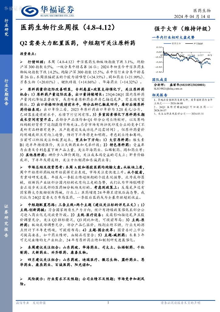 华福证券:医药生物行业周报:Q2需要大力配置医药,中短期可关注原料药.pdf