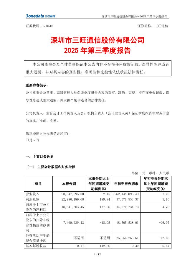 688618-三旺通信:深圳市三旺通信股份有限公司2025年第三季度报告.pdf