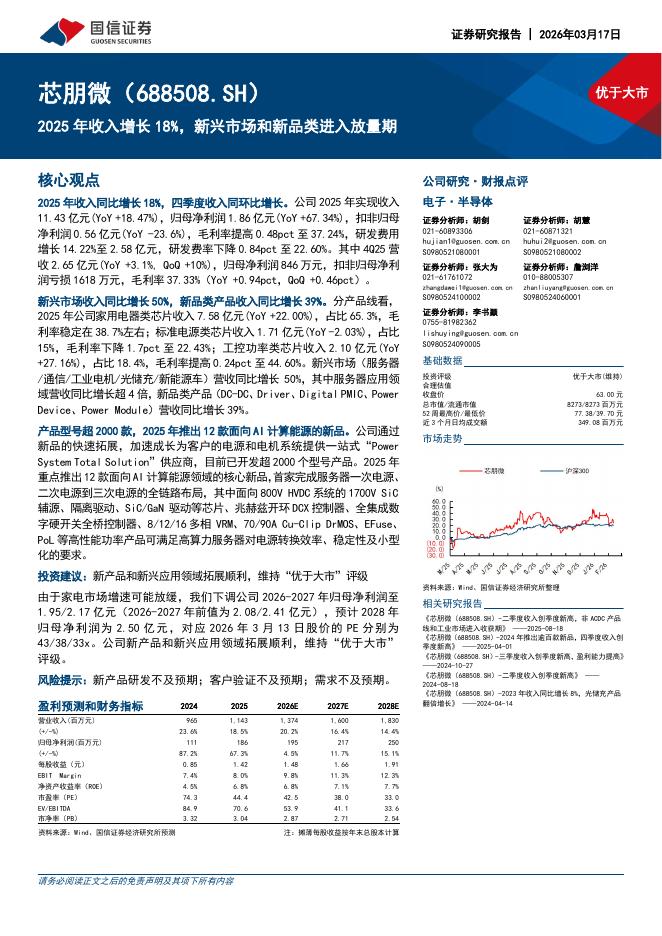 国信证券:芯朋微(688508)-2025年收入增长18%,新兴市场和新品类进入放量期.pdf