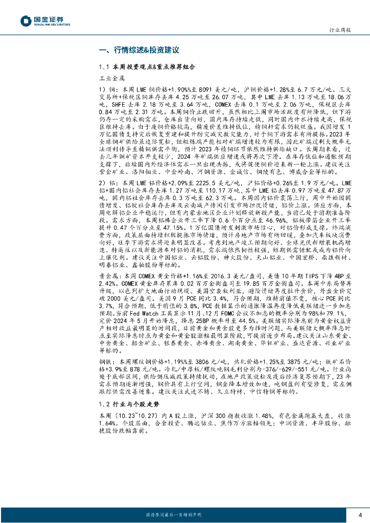 国金证券:大宗及贵金属周报:停止加息预期持续强化,黄金股进入配置期.pdf