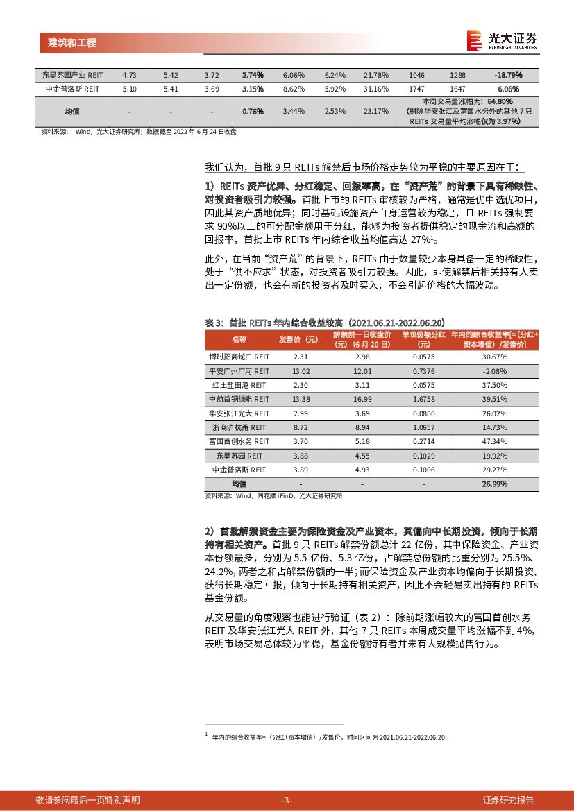光大证券:建筑装饰行业基建公募REITs专题研究之十三:解禁冲击下,REITs二级市场表现超预期.pdf