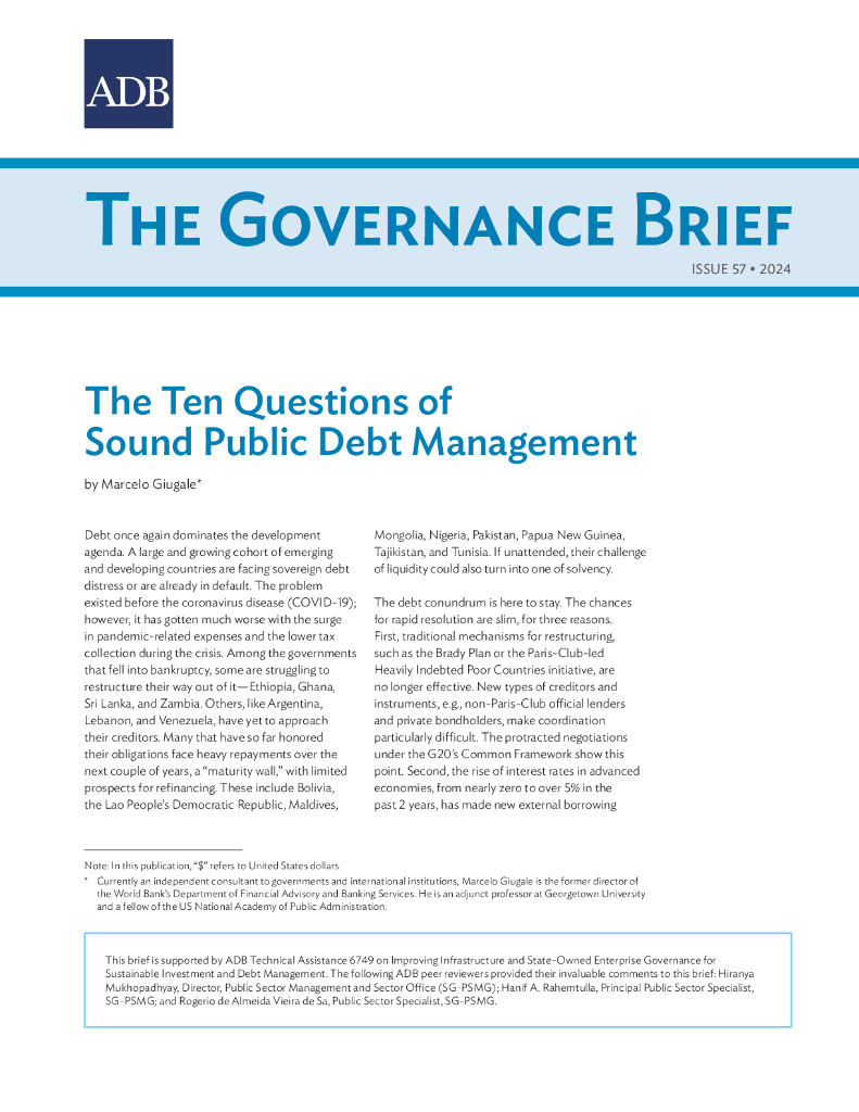 ADB亚洲开发银行:2024健全公共债务管理的十大问题报告(英文版).pdf