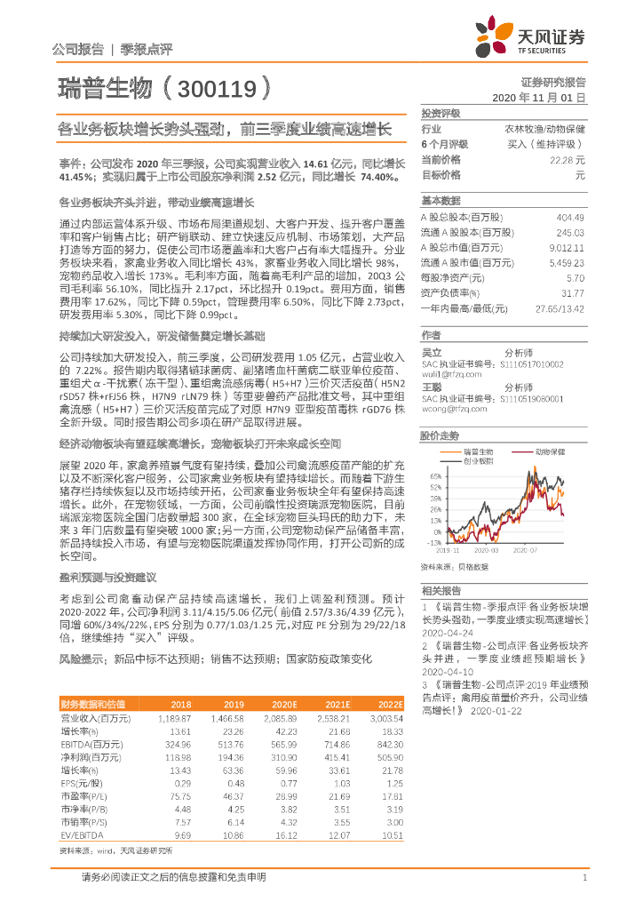 天风证券:瑞普生物(300119)-各业务板块增长势头强劲,前三季度业绩高速增长.pdf
